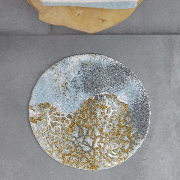 Abyss Habidecor's Dune Rug brings the wonders of nature home. The unique design resembles moss and water. This rug is so luxuriously soft and stylishly designed that it can also be used as a rug for any space. 85% Giza Egyptian Cotton Long Staple. 8% Acryl. 7% Lurex. 2200 g/m2. From Portugal.