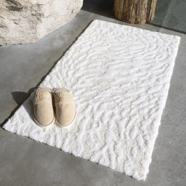 Abyss Habidecor's Flow Rug brings the wonders of nature home. The unique design resembles a natural occurrence either by water or wind sweeping across sand. This rug is so luxuriously soft and stylishly designed that it can also be used as a rug for any space. 55% Giza Egyptian Cotton Long Staple. 45% Acryl. 1900 g/m2. From Portugal.
