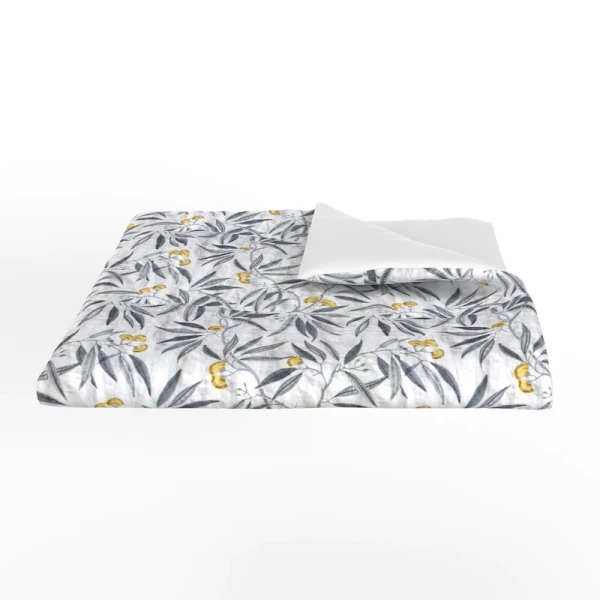 96"x50" padded throw, reversing to solid herringbone ground.