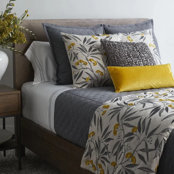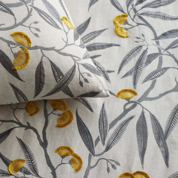 Ann Gish's Alyssum is part of The Met x Ann Gish collection. It is inspired by an Egyptian floral plaque, Alyssum's delicate, fringed flowers and grey leaves are embroidered onto a herringbone ground.