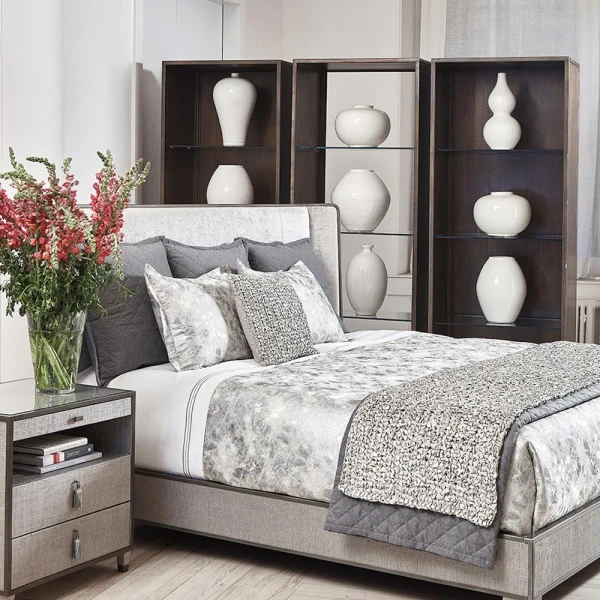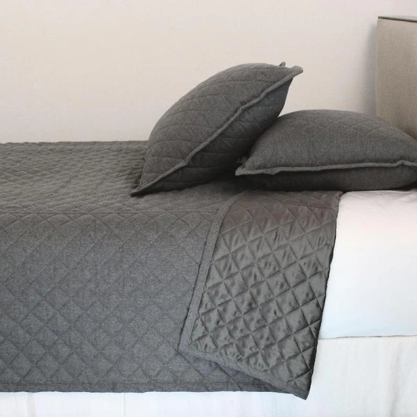Ann Gish's Flannel Grey coverlet set is a coverlet and european shams.  Flannel is a 2" diagonal diamond quilt pattern.  It feels so soft!   The look is elegant chic.   King set has three shams and the queen set has two shams. This collection is machine washable.