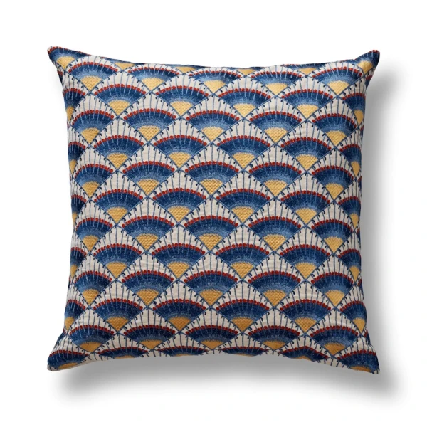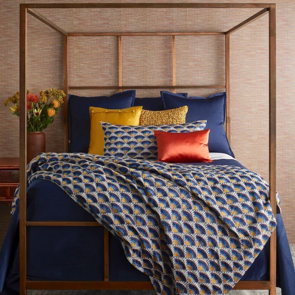 Ann Gish's Maiolica is part of The Met x Ann Gish collection.  Maiolica was named for the refined, white-glazed pottery of the Italian Renaissance. The intricate embroidery in a medley of blues, yellow & red is inspired by the design of a bowl with arms of the Ridolfi di Borgo of Florence.  Throw is lightly padded and reverses to coordinating linen blend.  Pillow cover comes with a feather/down insert and reverses to coordinating linen blend. Duvet cover reverses to 100% cotton sateen.  It has a zipper closure and ties.  60% Linen 40% Cotton with embroidery.