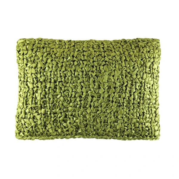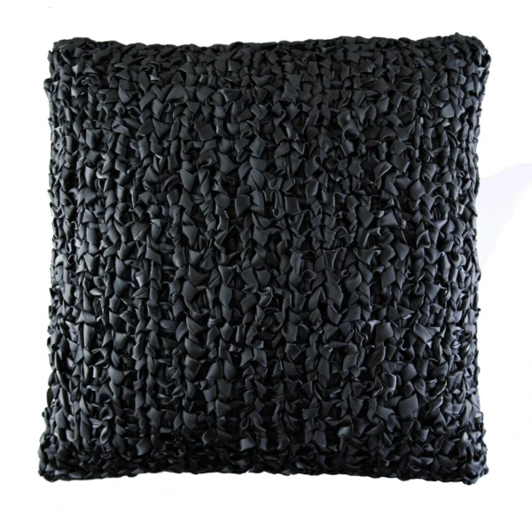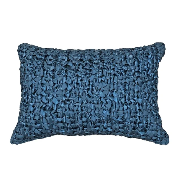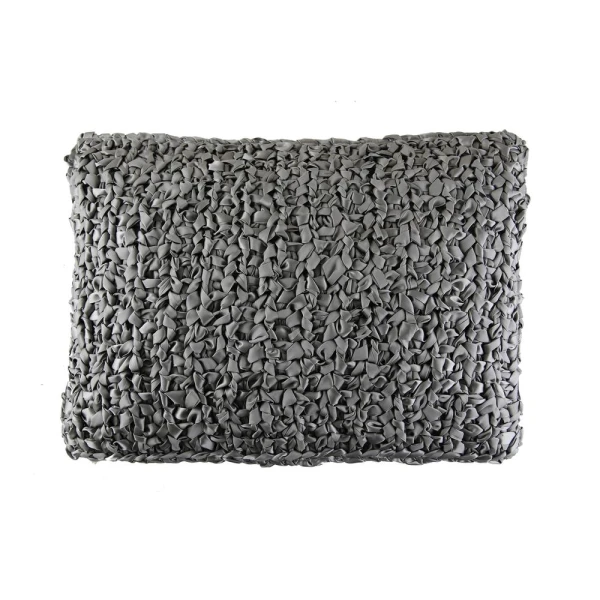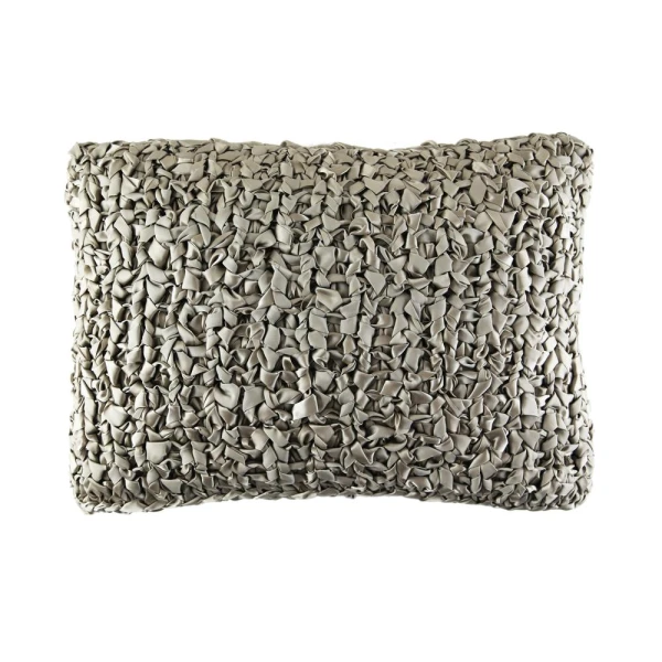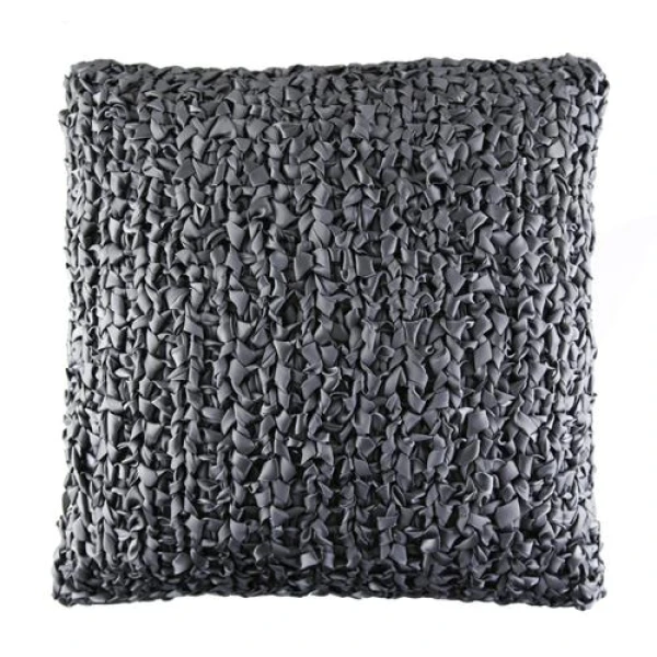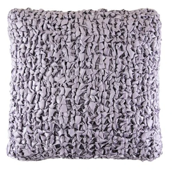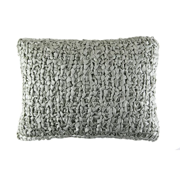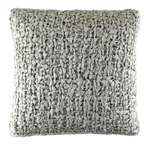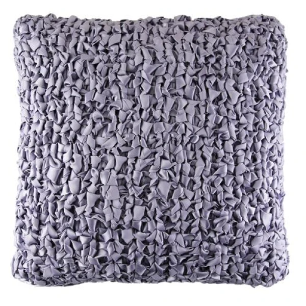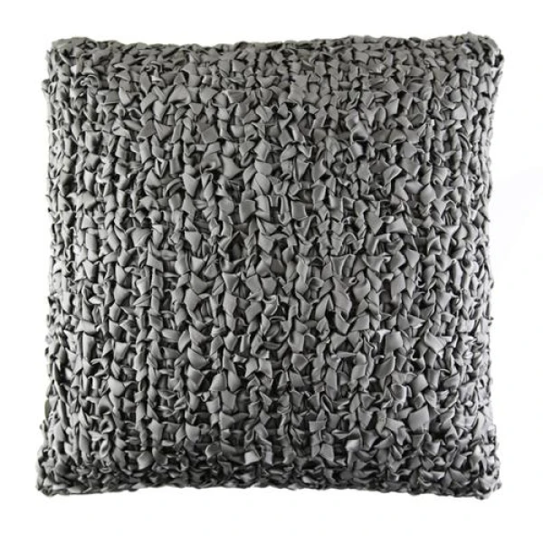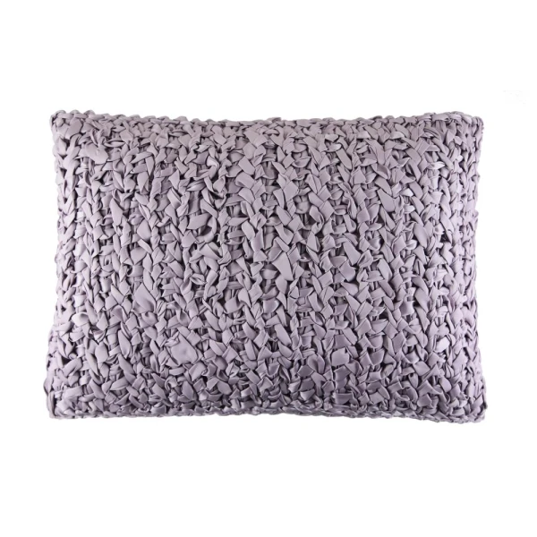 Ann Gish's Ribbon Hand Knit pillows and foot quilt are fun and exciting.   They are hand-knitted from amazing chic ribbon.  Then backed with coordinating cotton sateen.  Pillows have a zipper closure and include 95/5 feather and down insert.  Throw measures 96 x 24" but may stretch as it is a knit.  Several colors available.  Add one to add a pop of color or several mixed and matched.  100% Polyester with cotton reverse.