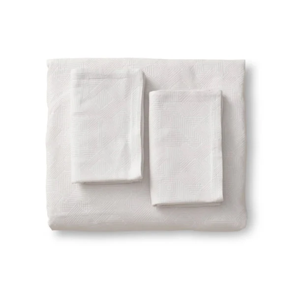 Ann Gish's Sashiko in Bone is part of The Met x Ann Gish collection. It was inspired by a Meiji-era Kimono. The Sashiko duvet set distills the motifs of the kimono into a 100% cotton jacquard. Garment washed for softness.