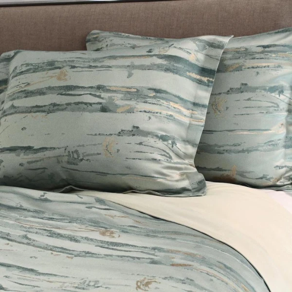 Ann Gish's Serenity Blue is breathtaking. Shades of aqua accented by gold accents create a stunning display for any room that likes to make a statement.   King set includes duvet and two king shams.  Queen set includes duvet and two standard shams. 100% polyester. Dry Clean.