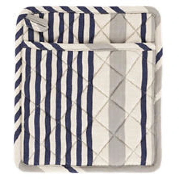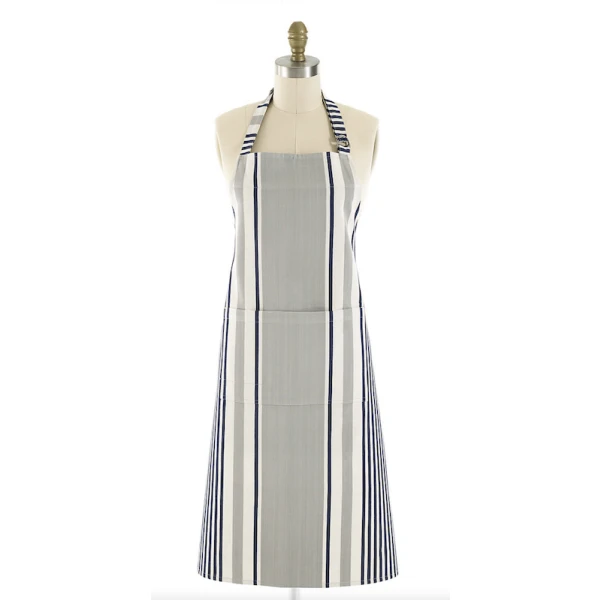 Pine Cone Hill's Gunner Stripe Apron is the perfect stylish protection from the spills and splatters of the kitchen. Personally designed by Annie (for herself!) with an adjustable loop tie around the neck, plenty of coverage, extra long ties to wrap and secure at the front, a clever pocket construction for small tools and a separate compartment for the smart phone. Easy to throw in the wash and available in a vast selection of our favorite stripes for any and every kitchen situation. Don't forget the matching pot holders! 100% Cotton. Made in India.