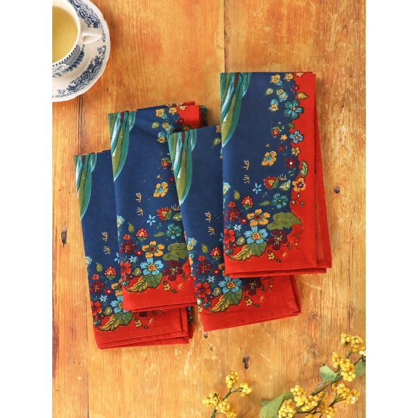 April Cornell's Rooster in Navy Napkins are so cheerful. Once more her iconic Rooster appears, eager to serenade your home with a dose of feel-happy color! Cock-A-Doodle-D 100% cotton.