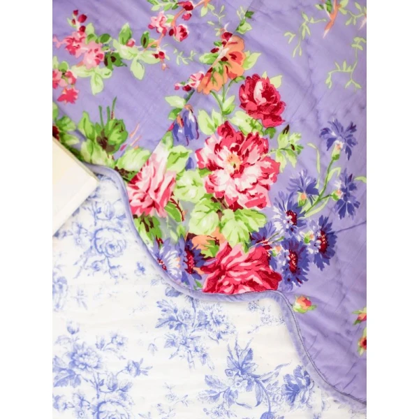 April Cornell's Cottage Rose Throw is a hand quilted soft voile cotton, trimmed with scalloped cotton velvet piping that will surround you in comfort as you nestle in for warmth.  Exquisitely crafted from the hands of our master craftspeople, infused with the color that makes our hearts smile.  Signature April Cornell Print.  100% cotton.