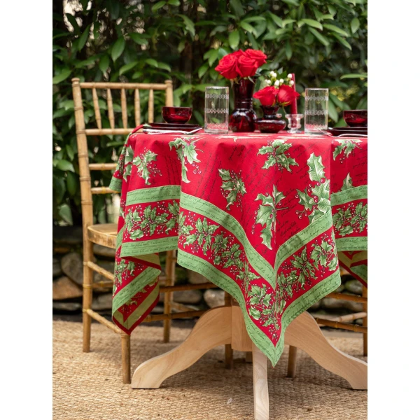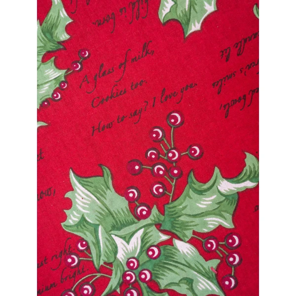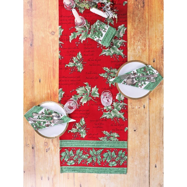 April Cornell's Holly Song in Red napkins are quite charming. They have lovely lyrical sentiments penned in April's inimitable style.  That pattern adds a touch of whimsy and wonder to her signature Holly print. 100% Cotton. Signature April Cornell print!