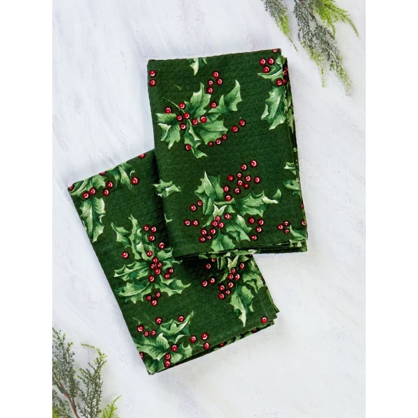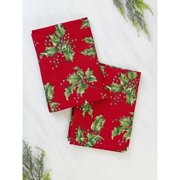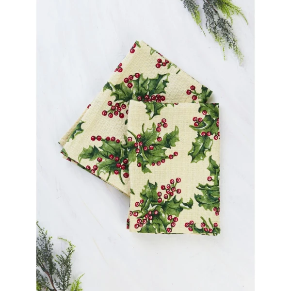 From April's 2021 Holiday collection comes her Holly signature print in tea towels.  Sold individually -- choose from red, ivory or green. Whether you call them hand towels, or tea towels, these uniquely charming textiles deliver a delightful splash of color and texture to the heart of your kitchen.