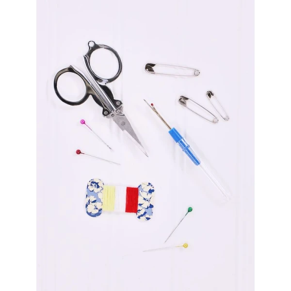 April Cornell's Parade Patchwork Pocket Pin Cushion is adorable and practical.  Signature color finds form in one of April's marvelous floral patterns in this one of a kind design.  It comes with folding scissors, small thread card with 3 thread colors, 3 safety pins, 3 sewing pins, seam ripper.  Spot Clean.  100% Cotton