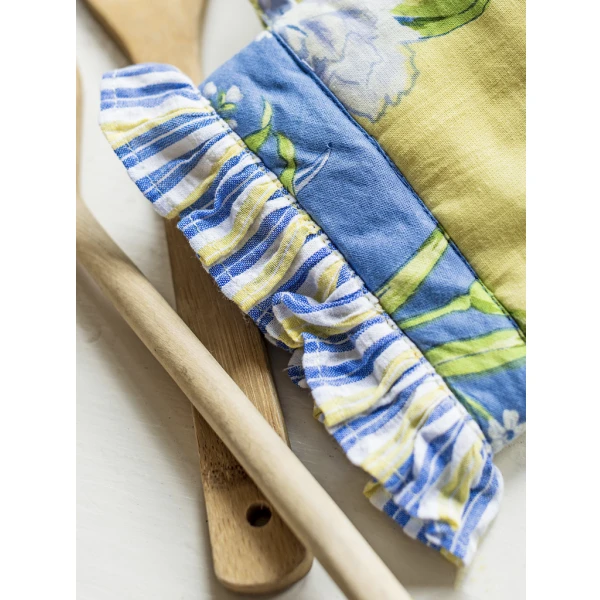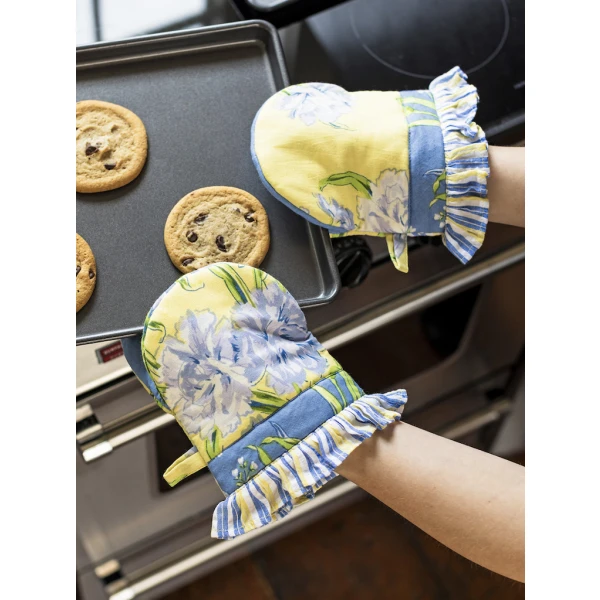April Cornell's Provence Patchwork Mini Mitt Set is a necessary complement for every kitchen, these original oven mitts add just the right colorful touch to enliven a happy home!  This pattern spring to life in beautiful quilted designs and are lined with raw cotton for functional heat absorption. The mitts come in a set of two. 100% cotton.
