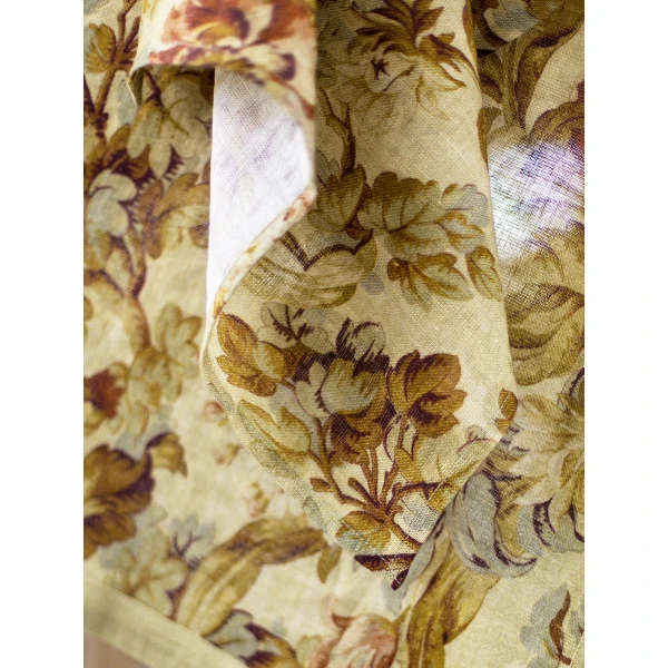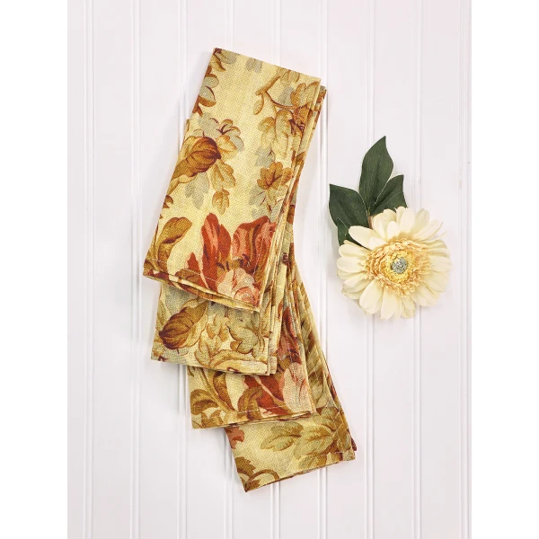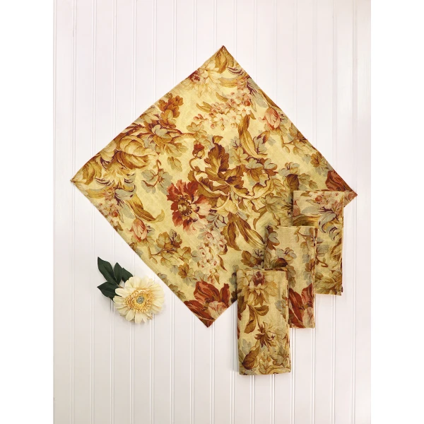 From April Cornell -- comes the Sojourn Linen napkins with a hemstitch finish. Classic fall colors are printed on a cotton/linen blend  (20% cotton and 80% linen).  Coordinating cloths available by special order. Or pair them with the Sojourn velvet runner.