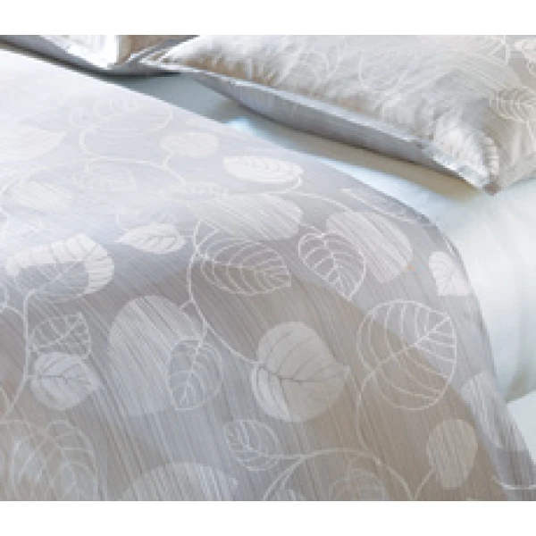 features an elegant striated jacquard pattern of swirling autumn leaves.