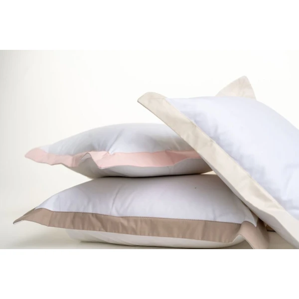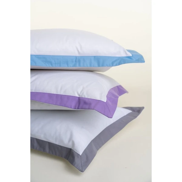 Catia is a classic look. It is fresh and clean with a pop of color of your choosing. White percale sheet with an applied border. Photographs shows Catia as the top boudoir pillow. Catia is available in percale sheets, shams and duvet covers. Printed and finished in Italy. Border colors are all colors available in Camilla. Constructed in USA. Shams have a 1" flange.