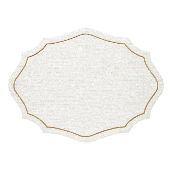 Bodrum's Byzantine easy care placemats were inspired by the Byzantine architecture, these mats have a traditional look and a unique shape. The single embroidery allows these mats to work with many of Bodrum's beautiful napkin collections and they look great with your finest china! Set of 4