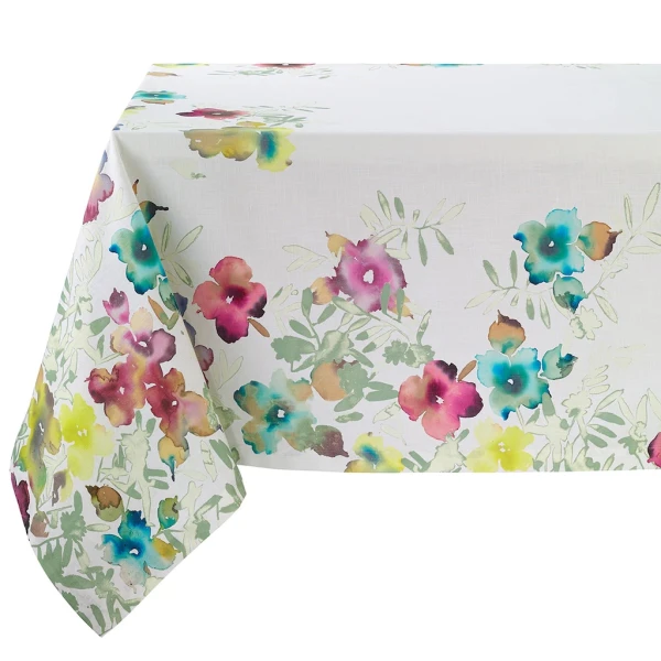 Bodrum's Enchanted Gardens Table Linens feature a beautiful floral print that appears to be hand painted in vibrant watercolors of turquoise, lemon and berry. This cotton collection is available in napkins, runners and 5 sizes of tablecloths.