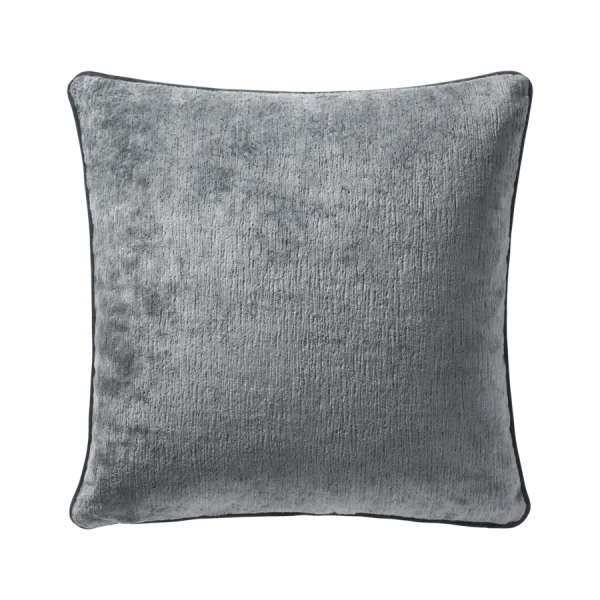 Iosis' Boromee pillows are in rich bright shades with non traditional and matte appearance. These generous linen velvet pillows are in bright colors and highlighted with a dark velvet piping.  Solid velour front, reversing to a solid linen back, piped finish, zipper closure.  Down and feather insert is included. Linen Velour.