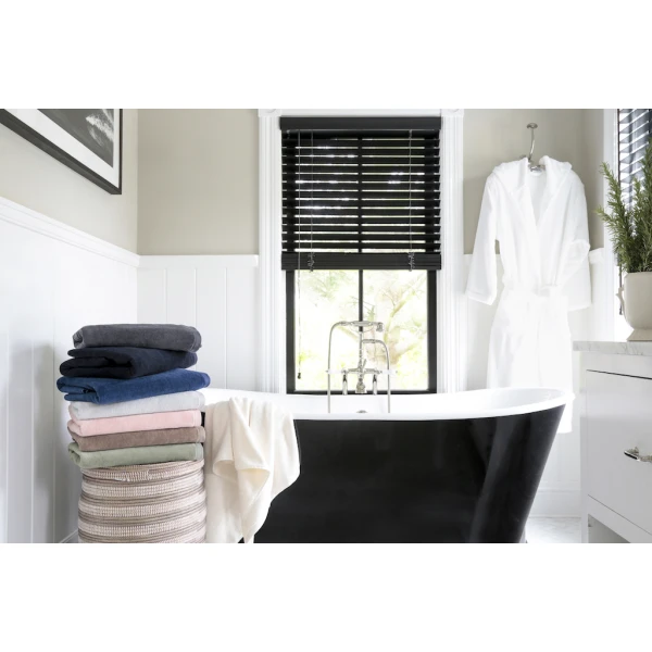 The luxrious feel of Sferra's Canedo towels and robes will make you want to wrap yourself in them morning, noon, and night.  600 gsm bath towels and 900 gsm tub mat.