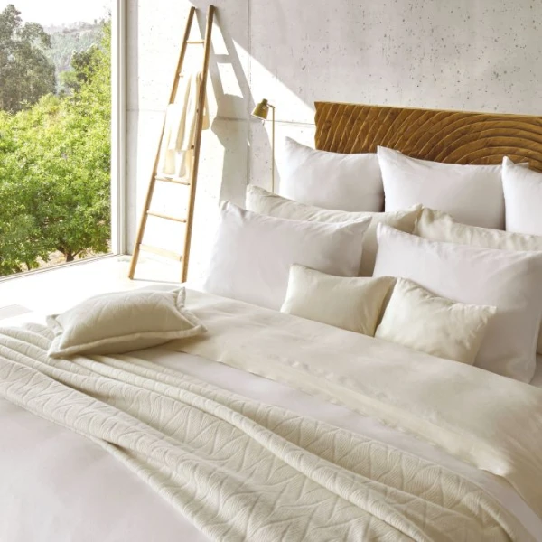 Celso de Lemos Moon offers a more casual look than either percale or sateen.  It is a strong and breathable linen.  If you value softness and durability but want a less formal look Moon is for you. Fitted Sheet: Deep Pocket - 18".  Pillows - Envelope.  Duvet - Envelope.