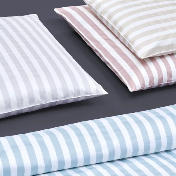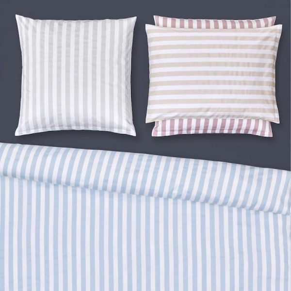 Christian Fischbacher's Calma has stripes that are a timeless classic when it comes to motifs. Printed on our finest cotton satin, pastel accents interplay with the white background. Whether used as a statement piece or combined with other designs, Calma adds a touch of serenity to your bedroom thanks to its understated appeal. Printed Satin.  100% cotton.