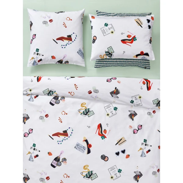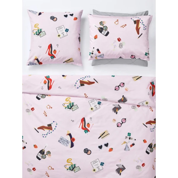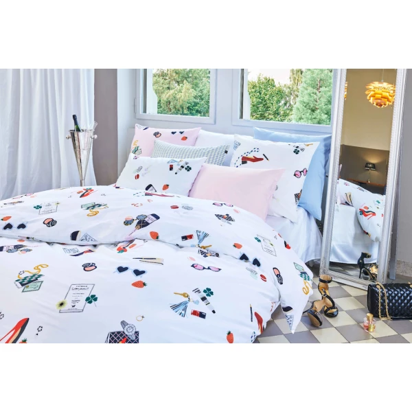 CATWALK is a light-hearted designed bedding collection that has classic iconic fashion designs. It transports you on a city break to Paris and makes it look like a chic fashionista has just emptied the contents of her handbag all over a hotel bed. It is woven in the so-called Swiss setting exclusively using certified Supima long staple cotton, the high quality of which is confirmed by the prestigious Swiss+cotton seal. This lends to the bed linen's subtle sheen and smooth feel. 100%cotton satin.