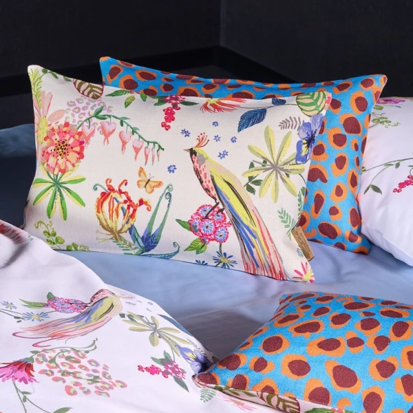 Christian Fischbacher's Papagena Decorative Pillow Cover will help you make a statement in your home and experience the incomparable feeling of luxury and comfort of their pillows. The perfect combination of high-quality design and exquisite craftsmanship makes these pillows an essential element in any stylish interior. Its design is of an enchanting depiction of exotic birds, colorful butterflies and gorgeous flowers.