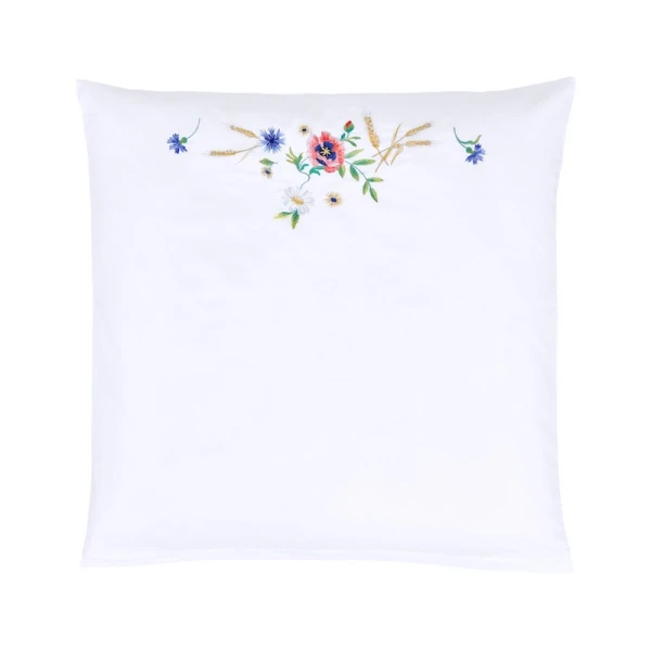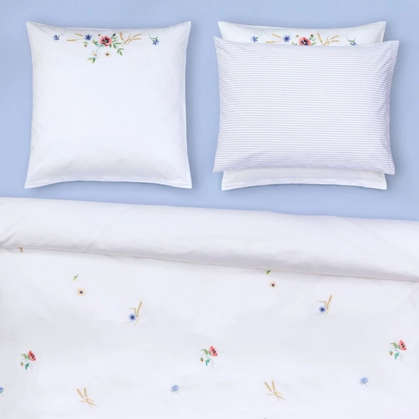 Christian Fischbacher's Summerfield has classic motifs that were spread across the bed linen in an elegant semé with thirteen harmonizing thread colors and implemented as embroidery. Thanks to the finest needle painting, the latest creation in this Luxury Night line exudes delicate beauty and unrivaled elegance. Satin Embroidered. 100% cotton.