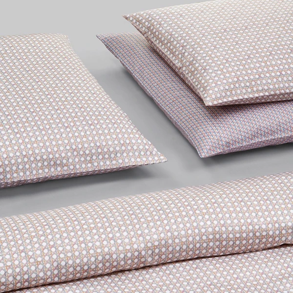 Christian Fischbacher's Vienna was influenced by Vienna’s characteristic coffee house chairs and their distinctive rattan weave. Artistically painted stripes in shades of gold, reddish hints and greens are intertwined, thereby creating the traditional structure of a Vienna wickerwork. VIENNA transports this intertwined design classic to the bedroom. 100% cotton.