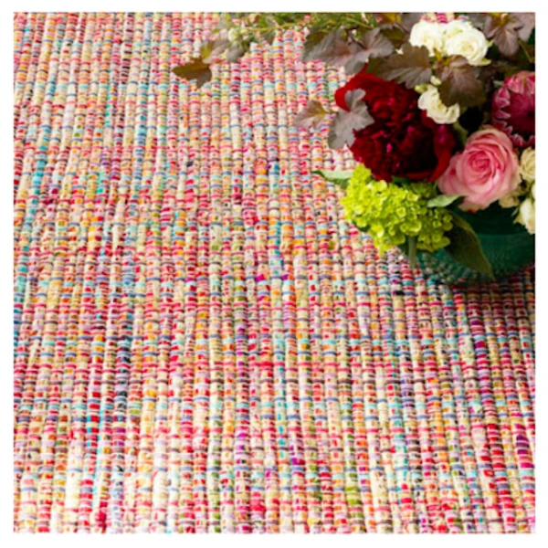 A kaleidoscope of repurposed cotton fabrics, stripped and woven with a white weft brings happy home with this everyday, everywhere, modern take on a rag rug. Durable construction; soft underfoot; lightweight. High- and low-traffic spaces; well-used family areas like hallways, bedrooms, and stairs. Regular vacuuming and the occasional gentle shake should keep your rug in shipshape condition. For cotton rugs, we recommend professional cleaning only.