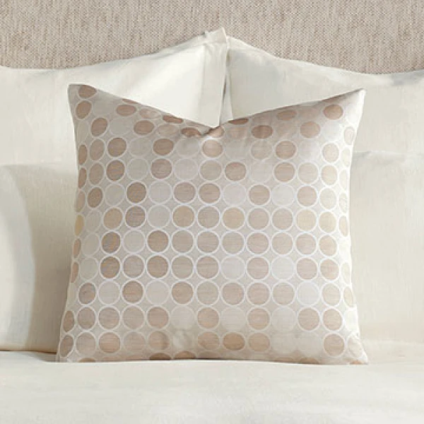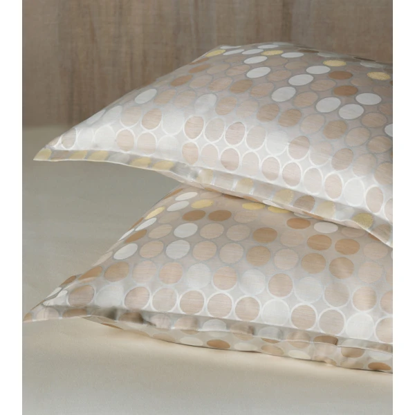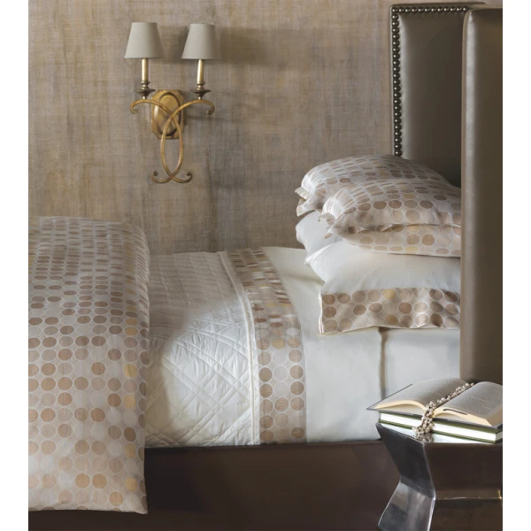 de' Medici's Adrienne is a champagne-infused glamorous collection. This light, bubbly collection brings its polished charm to any room with versatile neutral tones and subtle metallic accents. Its metallic jacquard duvet cover sits alongside velvet-ribbon sateen and a faux fur decorative pillow for an extra cozy, textured finish. Knife edge finish.  Hidden button closure. Ties inside duvet cover.  Ribbon Shams are available in king, queen and standard.  They are 300 thread count sateen with velvet ribbon around the border.  They have a 1 1/2" self flange and have an horizontal flap closure.  The European sham is in Adrienne like the duvet cover and has a 1" self flange edge finish and flap closure for easy care.