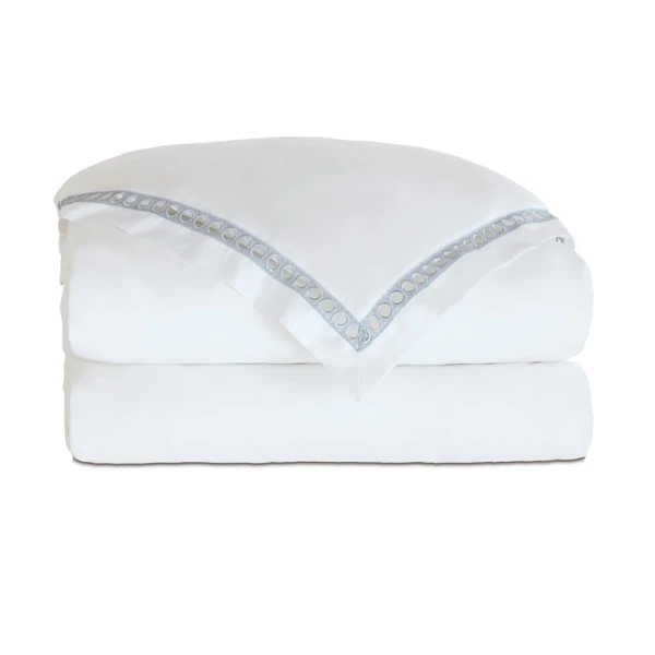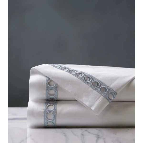 De' medici Celine collection has intricate lace in subtle shades of champagne and silver elevates the crisp white Egyptian cotton for a modern, glamorous feel. This heirloom quality collection pairs beautifully with a variety of styles adding a touch of romance and elegance to any setting. Celine's delicate Guipure lace and luxurious sateen define luxury fine linens. 300 thread count sateen with Guipure lace insert. 17” gusset on fitted sheet. Woven in Italy of the finest Egyptian cotton.