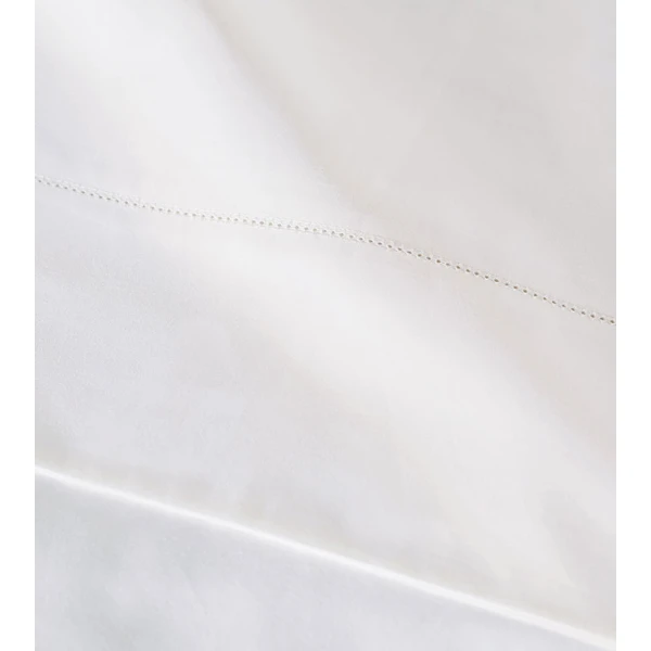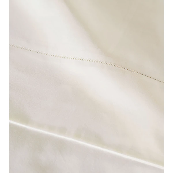 De' medici's Gianna Hemstitch is an essential in crisp percale linens. Characterized by a subtle hemstitch, this minimal collection adds a fresh, silky quality to any bedding. Available in classic white and elegant ivory, Gianna creates the perfect setting for a restful night.  Flat sheets have a 4" single hemstitch.  Duvet covers have a 2" self flange edge finish and button closure for easy care.  Shams have a 2" self flange edge finish and a flap closure.  400 thread count percale. Woven in Italy of the finest Egyptian cotton.