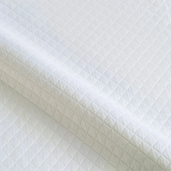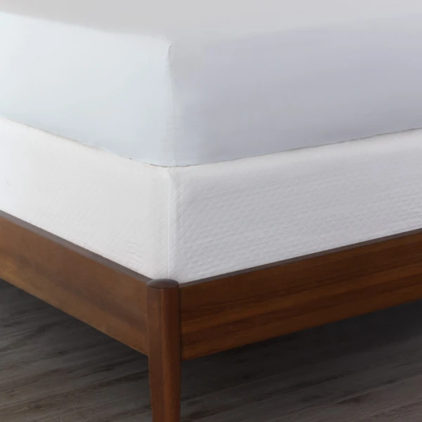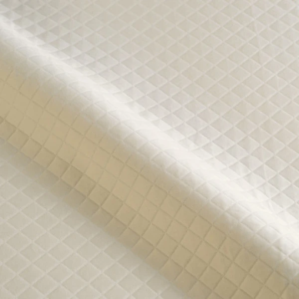 De Medici's Matera boxspring cover in a small diamond matelasse -- available in white or ivory.  Made with an 11” gusset with 4” decking border and elastic on all sides.  500 thread count sateen pique woven in Italy of the finest Egyptian cotton.