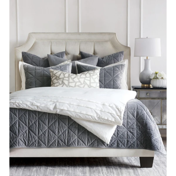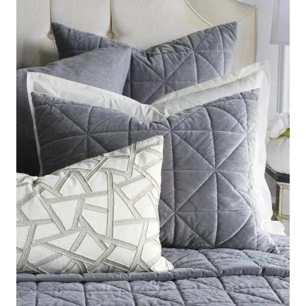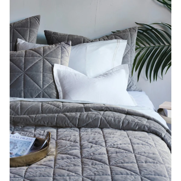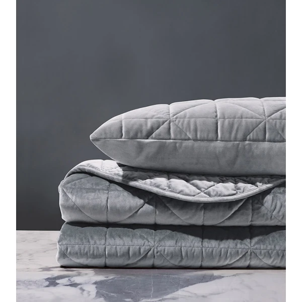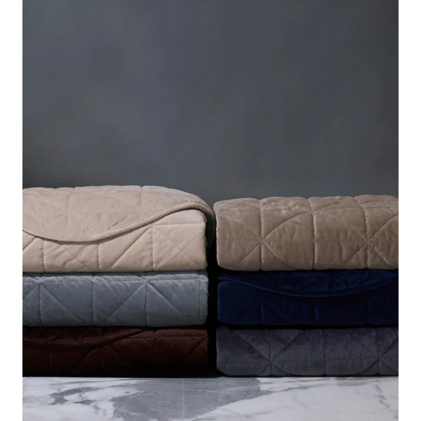 De' Medici's Nova comes in six colorways - from jewel-toned indigo to neutral ivory - alternate between cool matte and glamorous sheen depending on pile direction. Shams are backed in unquilted velvet while coverlets are backed in color-matched percale for added comfort, and all products are 100% machine washable for everyday ease of care. Nova drapes the bed in snug style. Silky smooth velvet, quilted in a chic geometric design, makes these shams and coverlets irresistibly cozy. Coverlets reverse to Chiaro Classic of matching color, a 200 thread count percale. They have rounded bottom corners with edging welt finish. Shams have a knife edge finish and reverse to Lumino velvet. Invisible zipper closure for easy care.