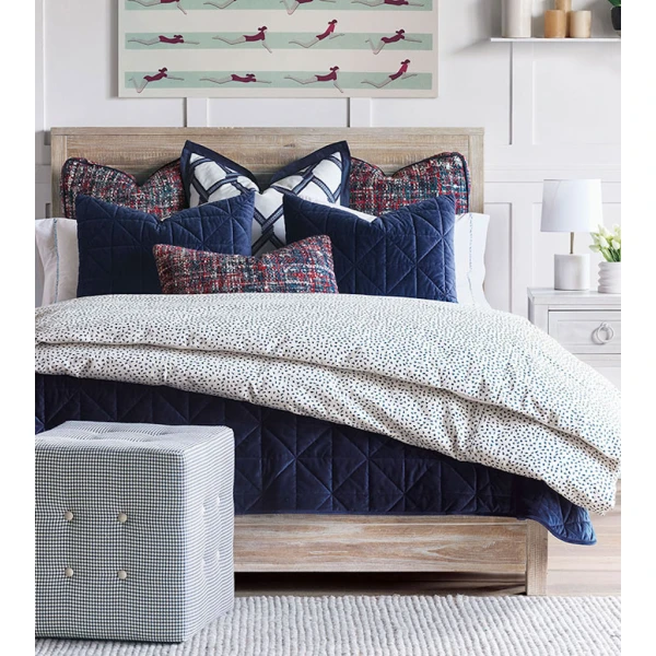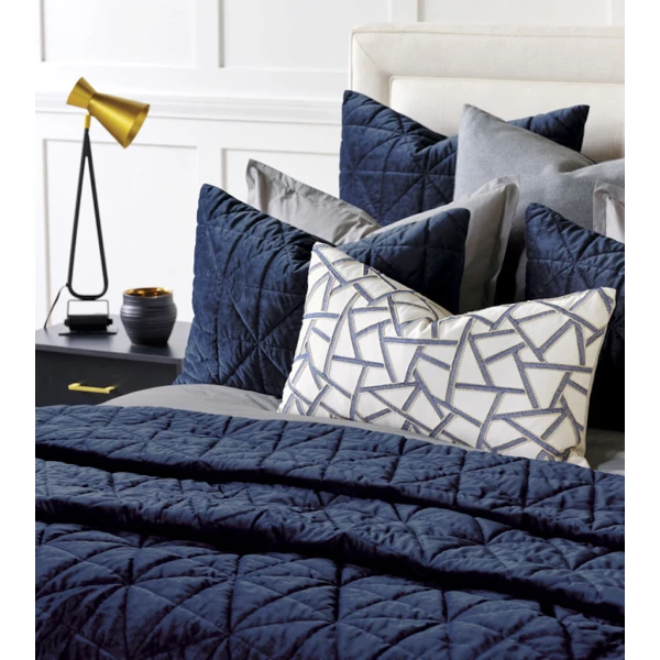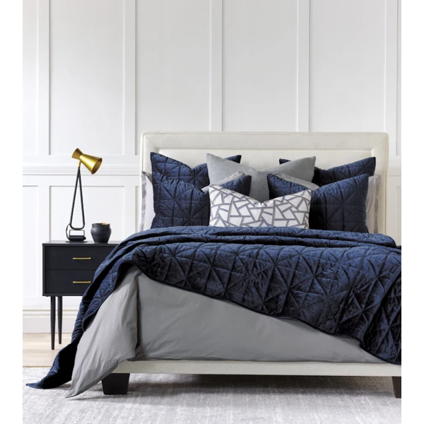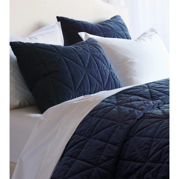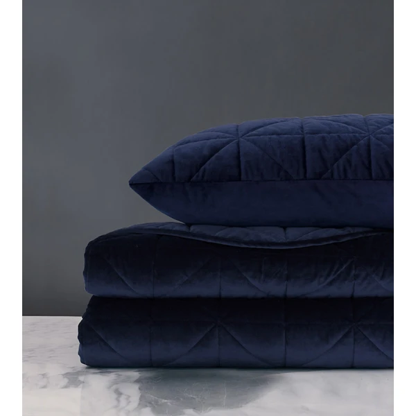 De' Medici's Nova comes in six colorways - from jewel-toned indigo to neutral  ivory - alternate between cool matte and glamorous sheen depending on pile direction. Shams are backed in unquilted velvet while coverlets are backed in color-matched percale for added comfort, and all products are 100% machine washable for everyday ease of care. Nova drapes the bed in snug style. Silky smooth velvet, quilted in a chic geometric design, makes these shams and coverlets irresistibly cozy. Coverlets reverse to Chiaro Classic of matching color, a 200 thread count percale. They have rounded bottom corners with edging welt finish. Shams have a knife edge finish and reverse to Lumino velvet. Invisible zipper closure for easy care.