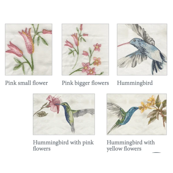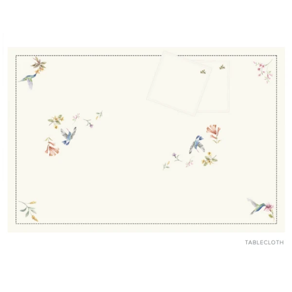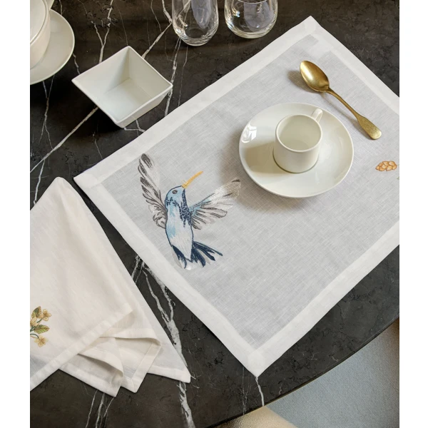 Dea Colibri Embroidered Table Linens are a true gem. The ancient art of embroidery has always enhanced the allure of home linens and furnishings. In addition, Dea demonstrates its great artistry through its knowing how to "compose†their embroideries using different techniques. We create elaborate designs with a play of light, always guaranteeing an extremely pleasing product. For Colibrì, the satin, silk, and stem stitches are used harmoniously,