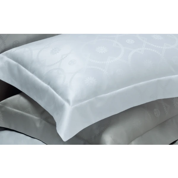 Dea Diamond Wreath Jacquard has an aura of regality and luxury. Diamond Wreath is a stunning collection by Timothy Corrigan for Dea. Sumptuous cotton sateen becomes the canvas upon which an elegant pattern is woven directly on Egyptian long fiber cotton which gives a feeling of three dimensionality to the design. Made in Italy.