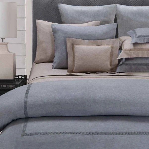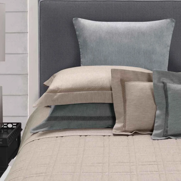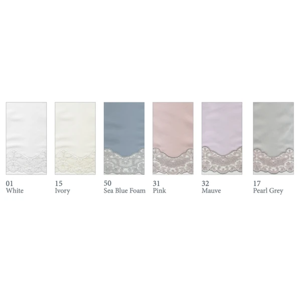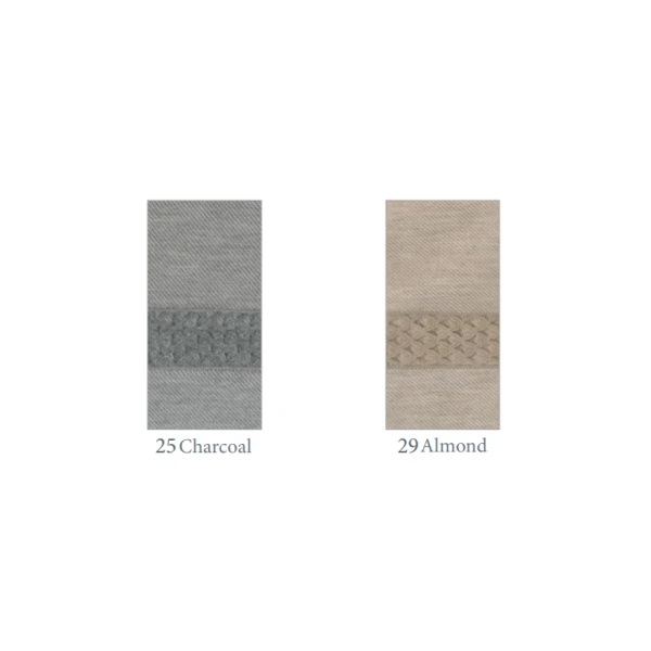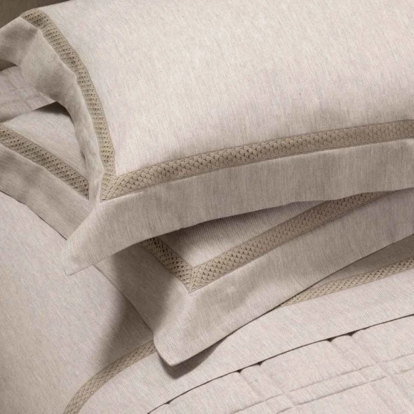 Dea Monviso Lace has an extremely soft and pliable two tone wool lace applique that is exclusive to DEA. This collection is elegant and sophisticated. This delicate woven twill fabric is the ultimate solid to compliment any color scheme. Its color scheme is contemporary and its lightweight will keep you comfortable all year round. 100% Cashmere touch Cotton. Made in Italy.