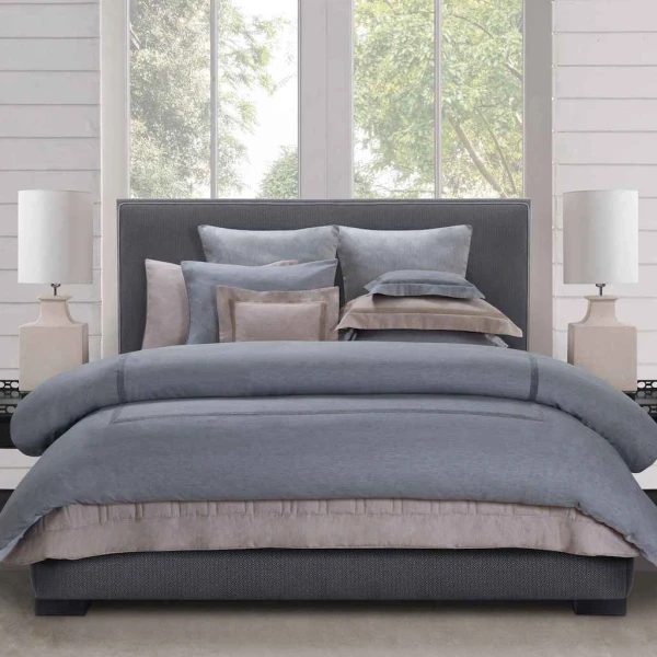 Duvet Cover: U-Shaped on top of the bed. knife edge and hidden button closure.