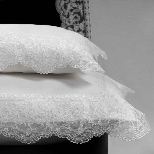 Dea Nabila Lace is understated yet elegant. 100% Cotton Percale. Made by Italian expert artisans Products made in our LAB in the Chianti Region. Italy.