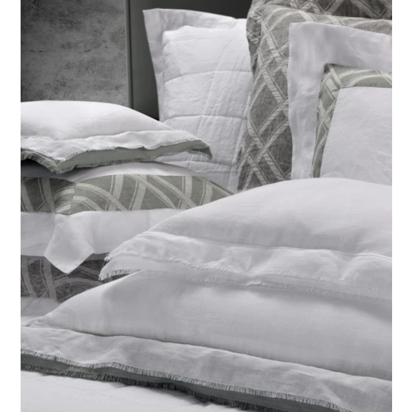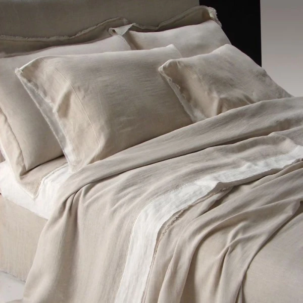 Duvet Cover: Double colored with hand-made Fringed double flanges applied on top of the bed bed with a tailored single row of satin stitch