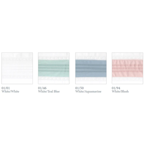 Dea Stefy Lace is subtle in color but stately in look. 100% RASO Cotton Sateen with pleated 100% cotton voile inset. Tulle Lace made by Italian expert artisans. Products made in their lab in the Chianti Region. Italy.