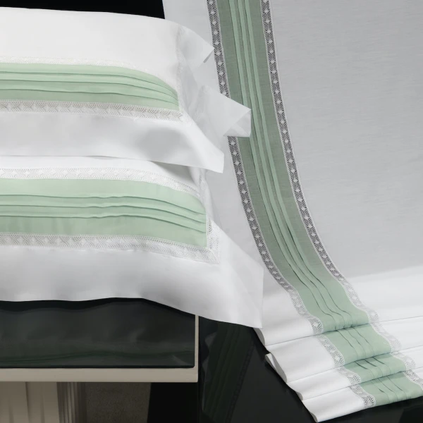Pillowcases: Inset lace embellished with pleated voile inset.