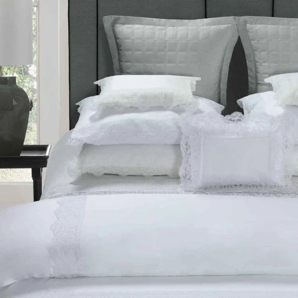 Duvet Cover: U-Shaped Multiple rows of laces and voile pleated inset.