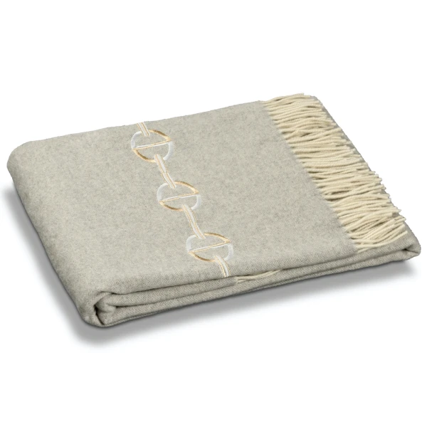 Timothy Corrigan for Dea's Chaine Embroidery Throw has a modern appeal with a distinctive design that frames and emphasizes the absolute beauty of this cashmere piece. The design has a contemporary and elaborate linked pattern.