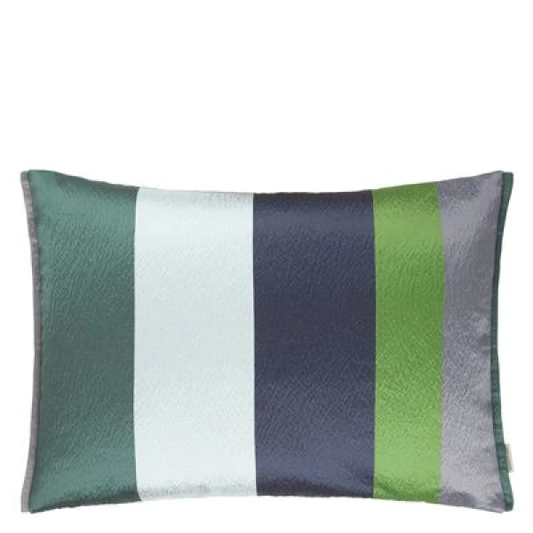 A wonderfully bold scale satin stripe, Saarika from Designers Guild is a decorative pillow in gorgeous tones of rich autumnal color. With a subtly textured hammered finish this stylish cotton rich decorative pillow is completely reversible and finished with a color block trim on both sides.