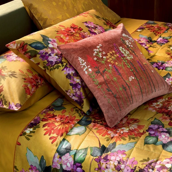 Fazzini's Terre d'Ocra has a seasonal palette that reinvigorates some of Fazzini's iconic designs such as the floral theme of Terre d'ocra. The colorful flowers are enhanced by its ocher base.