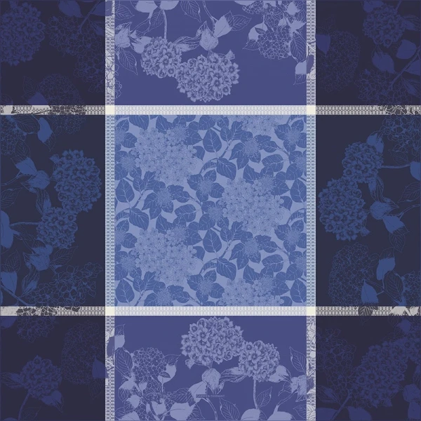 Garniet Thiebaut's Hortensias Bleu is stunning. Beautiful blues with hydrangeas in two sizes create a stunning picture. Green Sweet: Discover the revolutionary Green Sweet stain resistant treatment. This patented eco-friendly treatment protects your linens against spill and stains, without altering the look and feel of linens. Enjoy the look and soft feel of cotton linens, without worrying about stains. 100% extra-long staple Cotton. Made in France.