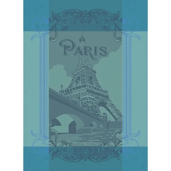 Garnier Thiebaut's Paris Seine Turquoise is grand.  A spectacular view of the Eiffel Tower from the Seine river woven in gorgeous blue hues.